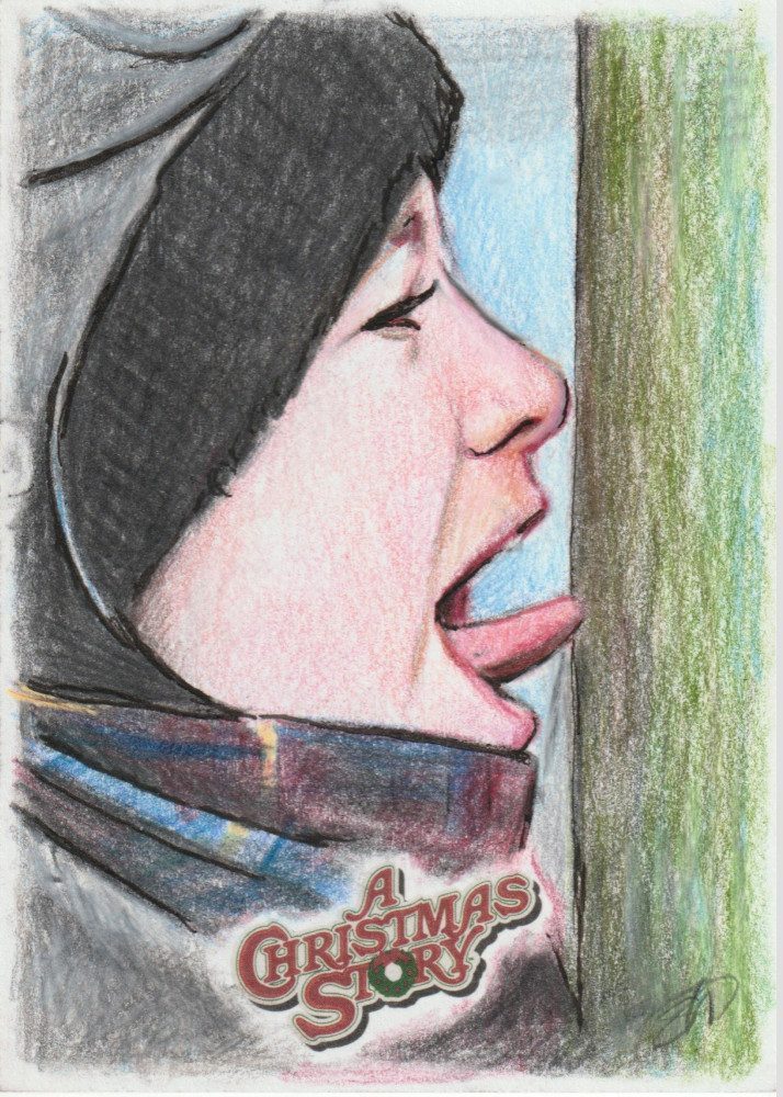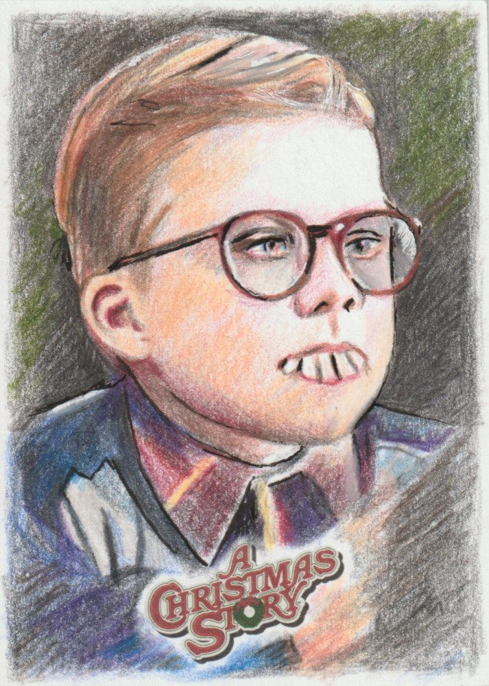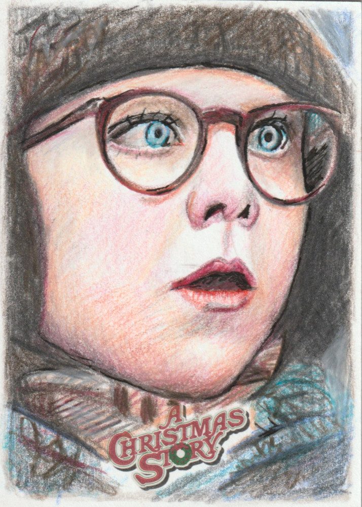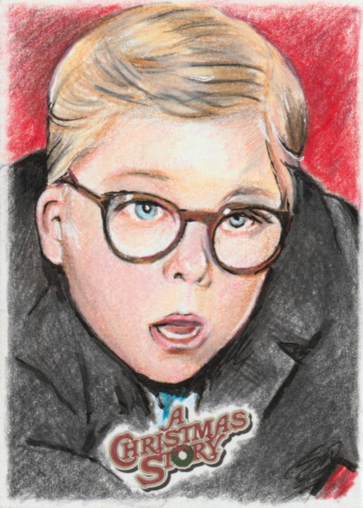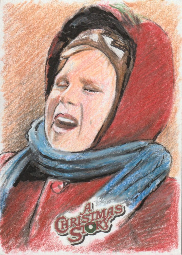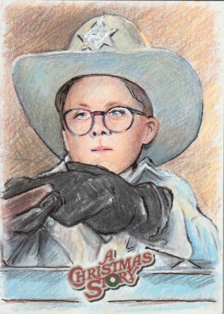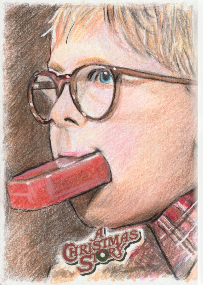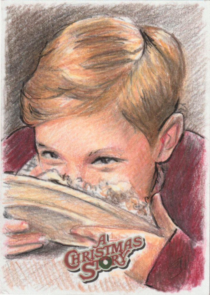 A Christmas Story Sketch prodotte da Card Cryptozoic entertainment. Carte collezionabili originali disegnate con matite colorate.