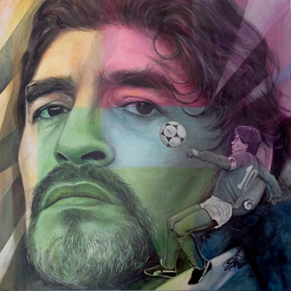 calciatorecoloricolorsd10sdipintomaradonamostraoiloliopaintingquadro