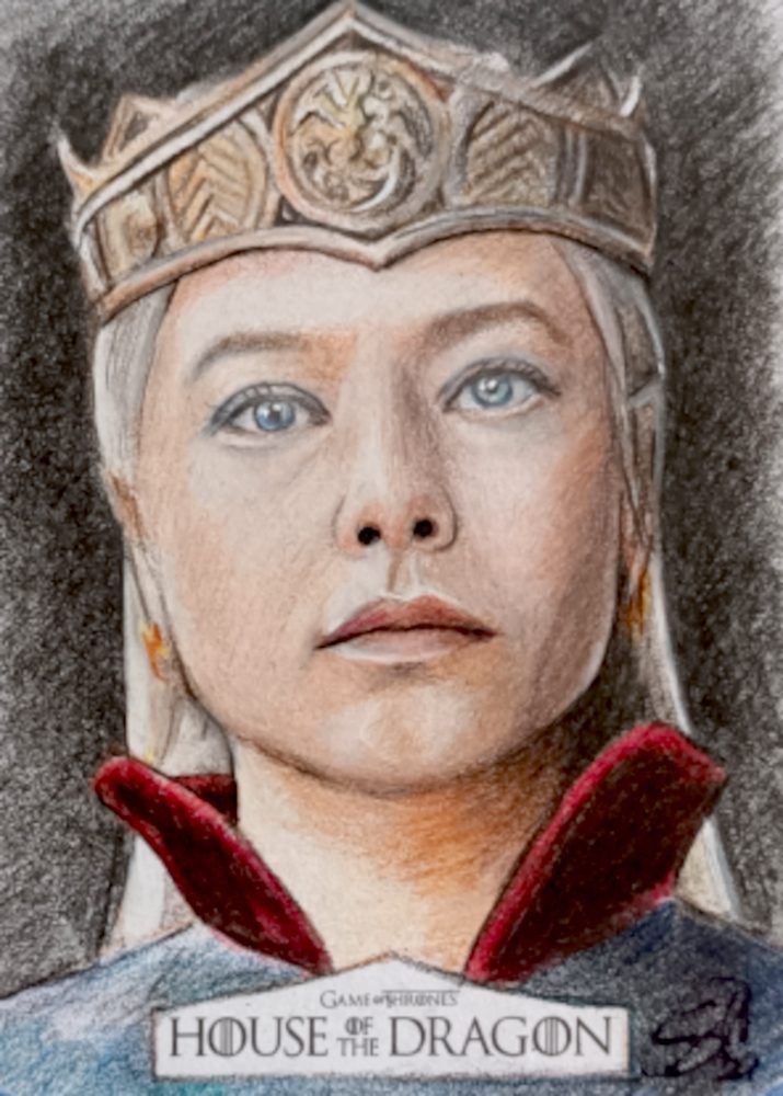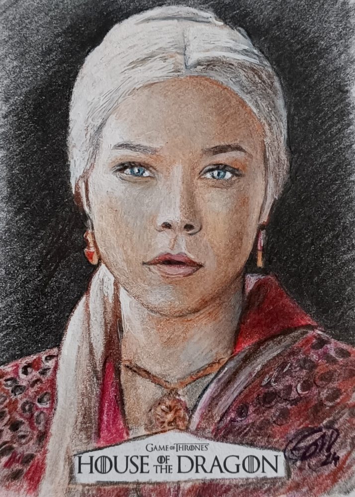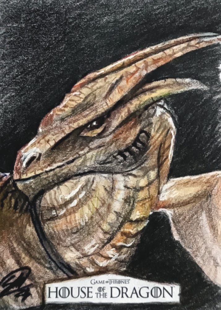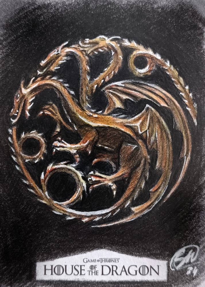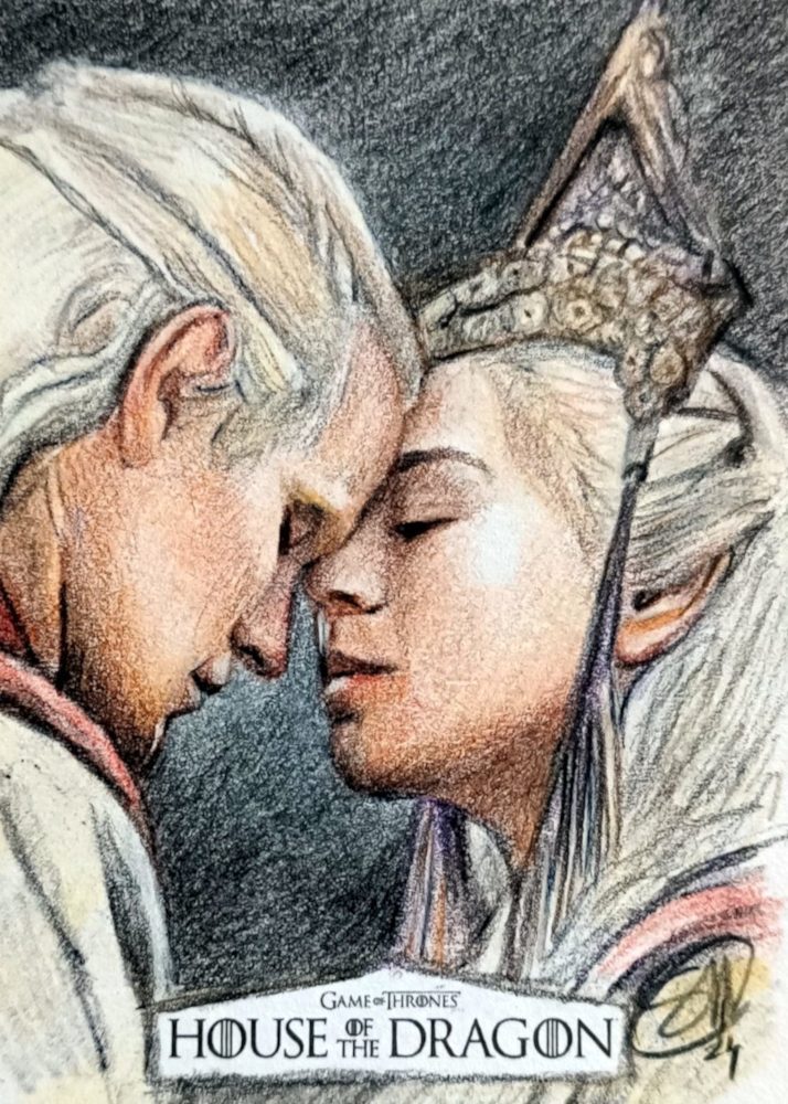 House of the dragon sketch card prodotte da Rittenhouse archivi. Disegnate con matite colorate.