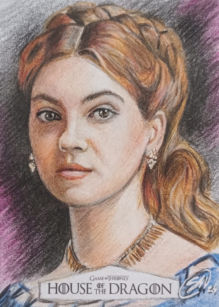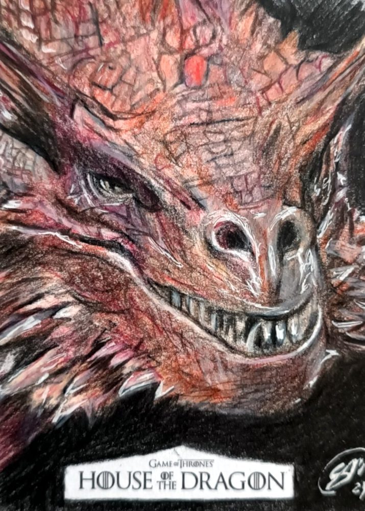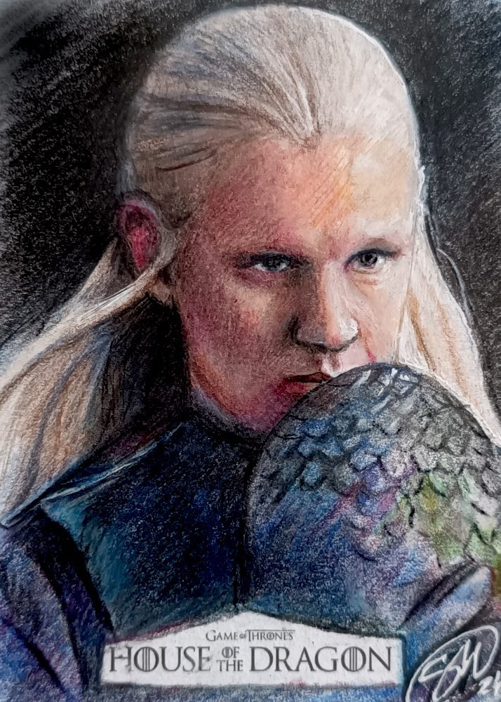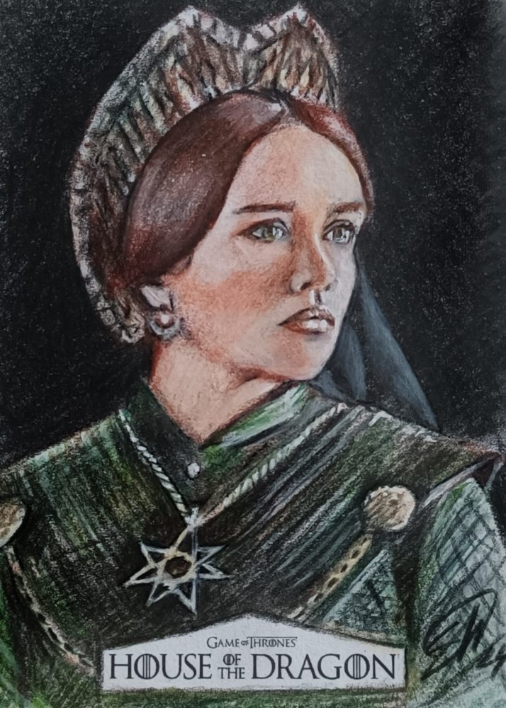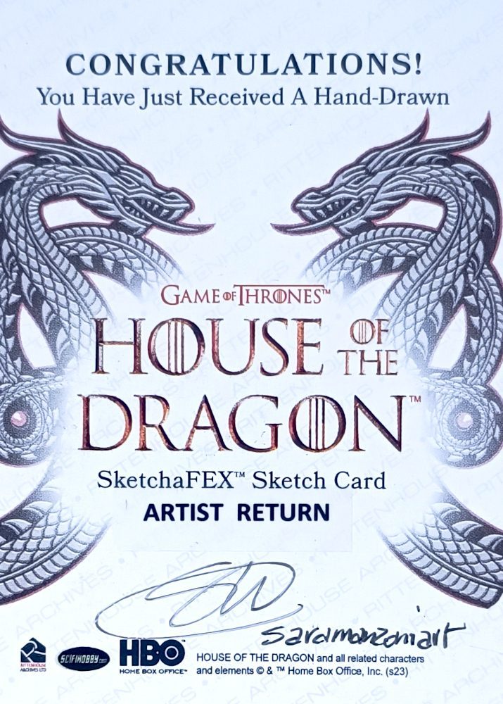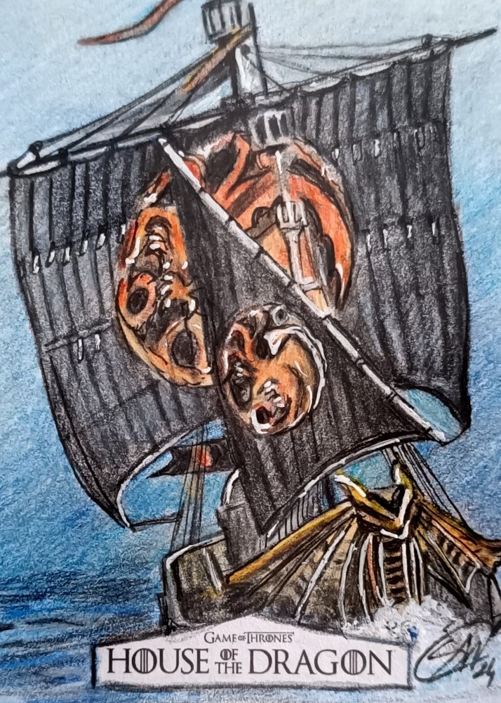 House of the dragon sketch card prodotte da Rittenhouse archivi. Disegnate con matite colorate.