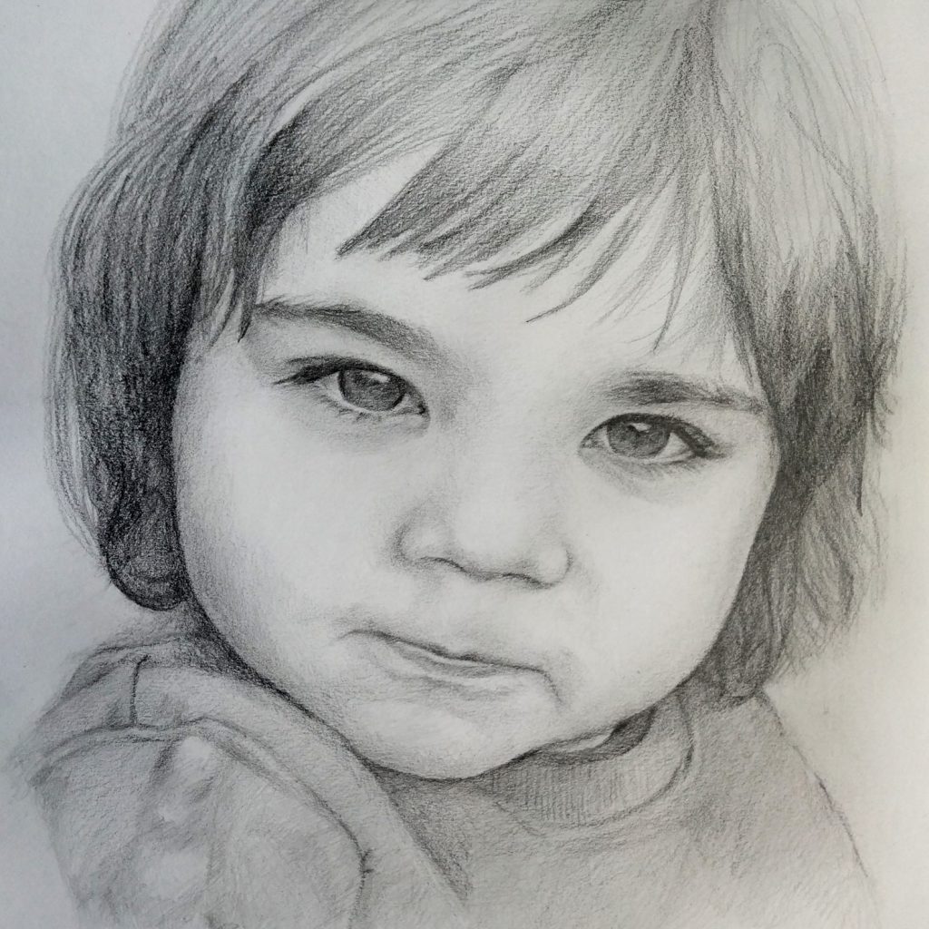 ritratto disegno a mano libera matita su carta bambino. Grafite su carta